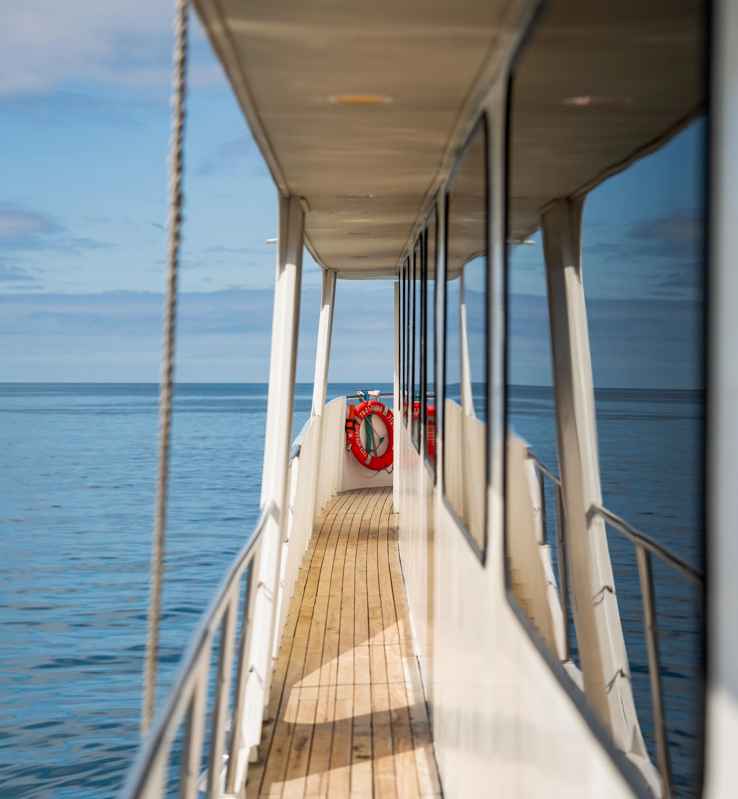 When the team set out to renovate the boat just over a year ago, our goal was to elevate the aesthetic while ensuring the design reflected the natural beauty of the islands. The design and quality of the materials were thoroughly examined to balance environmental impact with the guest experience, doing as much as possible to limit the extractive nature of a remodel while maximizing the awe-inspiring potential of a journey through one of the natural wonders of our world.