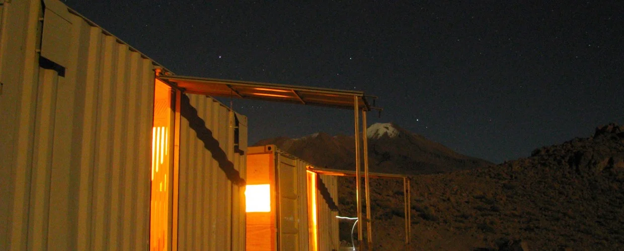 Constructed from refurbished shipping containers or abandoned village huts, these desert shelters are purpose-built for this journey.